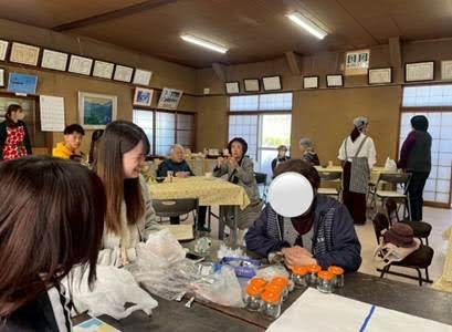 黒松フェスタは日曜日開催で、幅広い世代の方が集まると伺っていたことから、この機会に多世代の方と交流したいと考えました。黒松町の魅力である「海」をテーマに、シーグラスを使ったキャンドル作りのワークショップを企画し、大学生にも運営を手伝ってもらいました。また、フェスタ当日は参加者の方々と会話を交わす中で、黒松町とのつながりをどの程度感じているか、その理由について世代ごとにお話を伺いました。